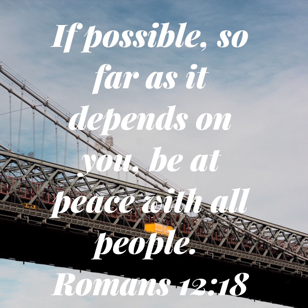 “If possible, so far as it depends on you, be at peace with all men. Never take your own revenge, beloved, but leave room for the wrath of God, for it is written, ‘Vengeance is Mine, I will repay,’ says the Lord” (Romans 12:18-19).