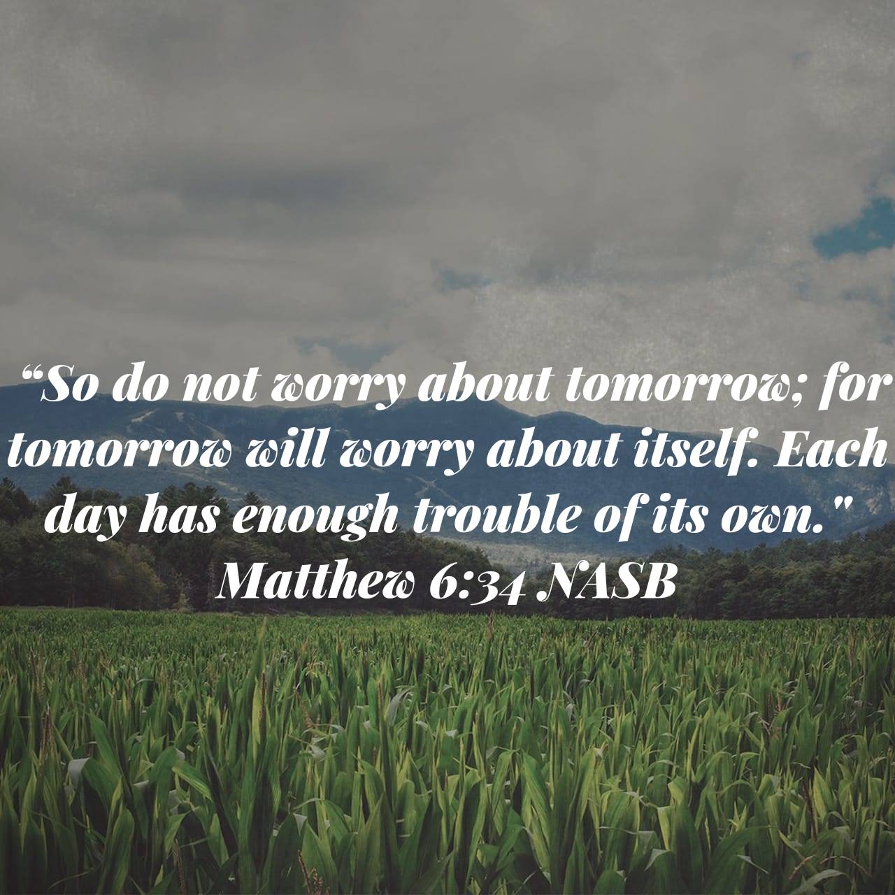 “So do not worry about tomorrow; for tomorrow will worry about itself. Each day has enough trouble of its own” (Matthew 6:34; all Scripture quotations are from the New American Standard Bible).