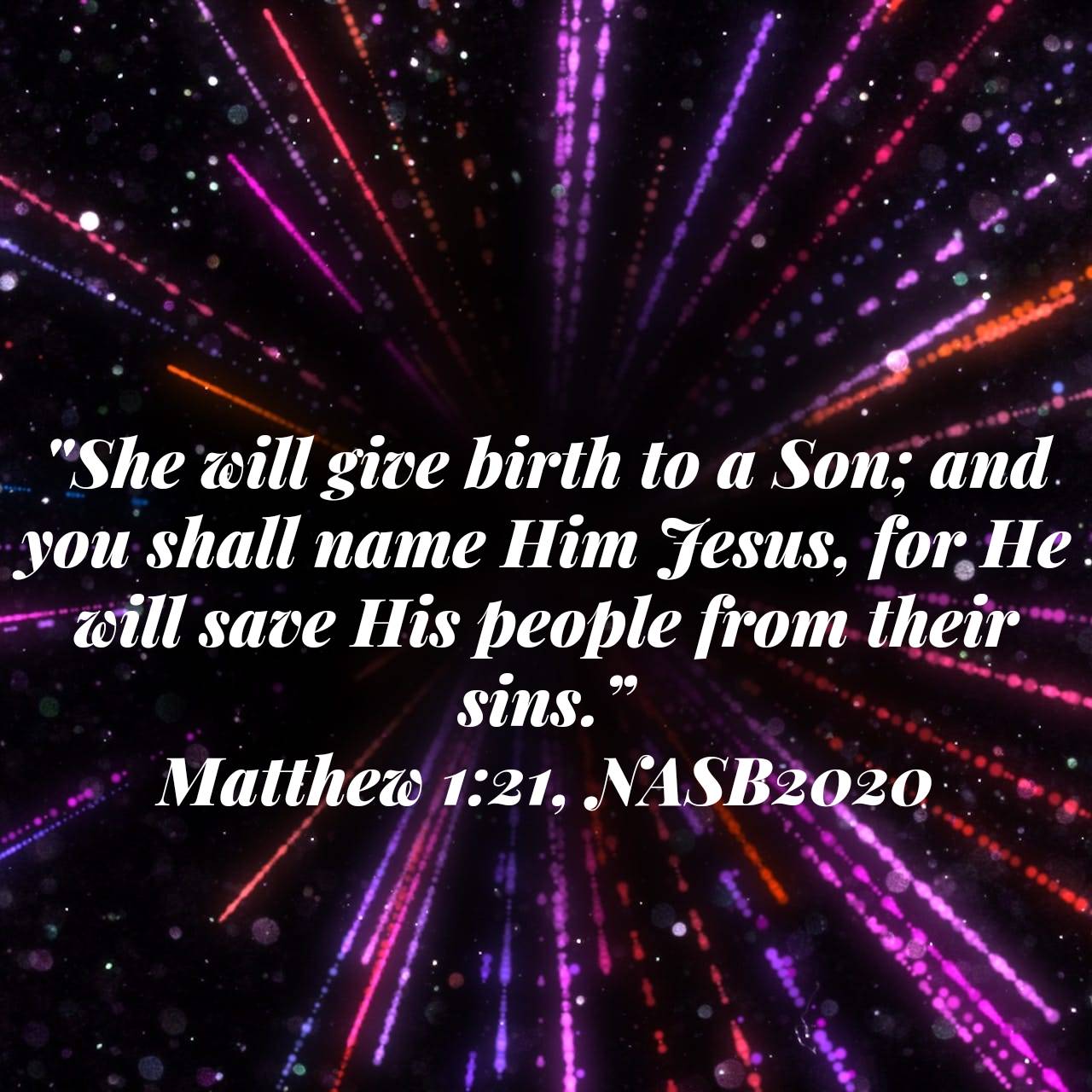 “She will give birth to a Son; and you shall name Him Jesus, for He will save His people from their sins” (Matthew 1:21).